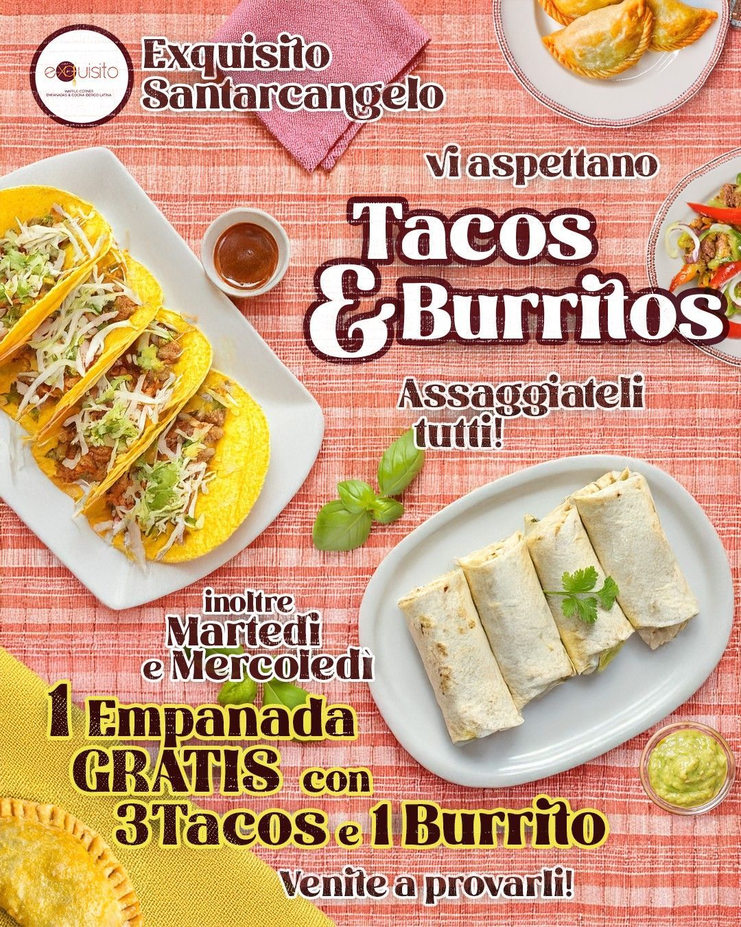 La cucina iberico-latina prevede tacos, empanadas, burritos, fajitas, paella, asado, churros, costine…